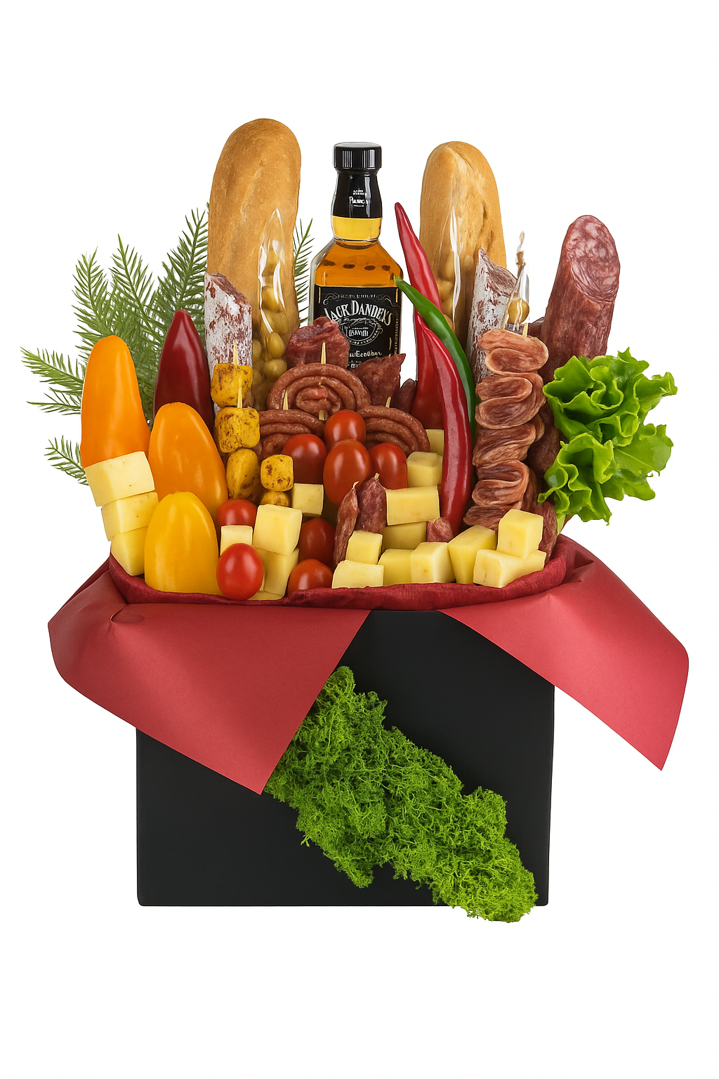 Ieškai dovanos, kuri nustebintų savo išvaizda ir skoniu? „Skonių puokštė“ – tai išskirtinis užkandžių rinkinys, sujungiantis gardžius mėsos gaminius, sūrius ir šviežias daržoves į vieną stilingą kompoziciją.
